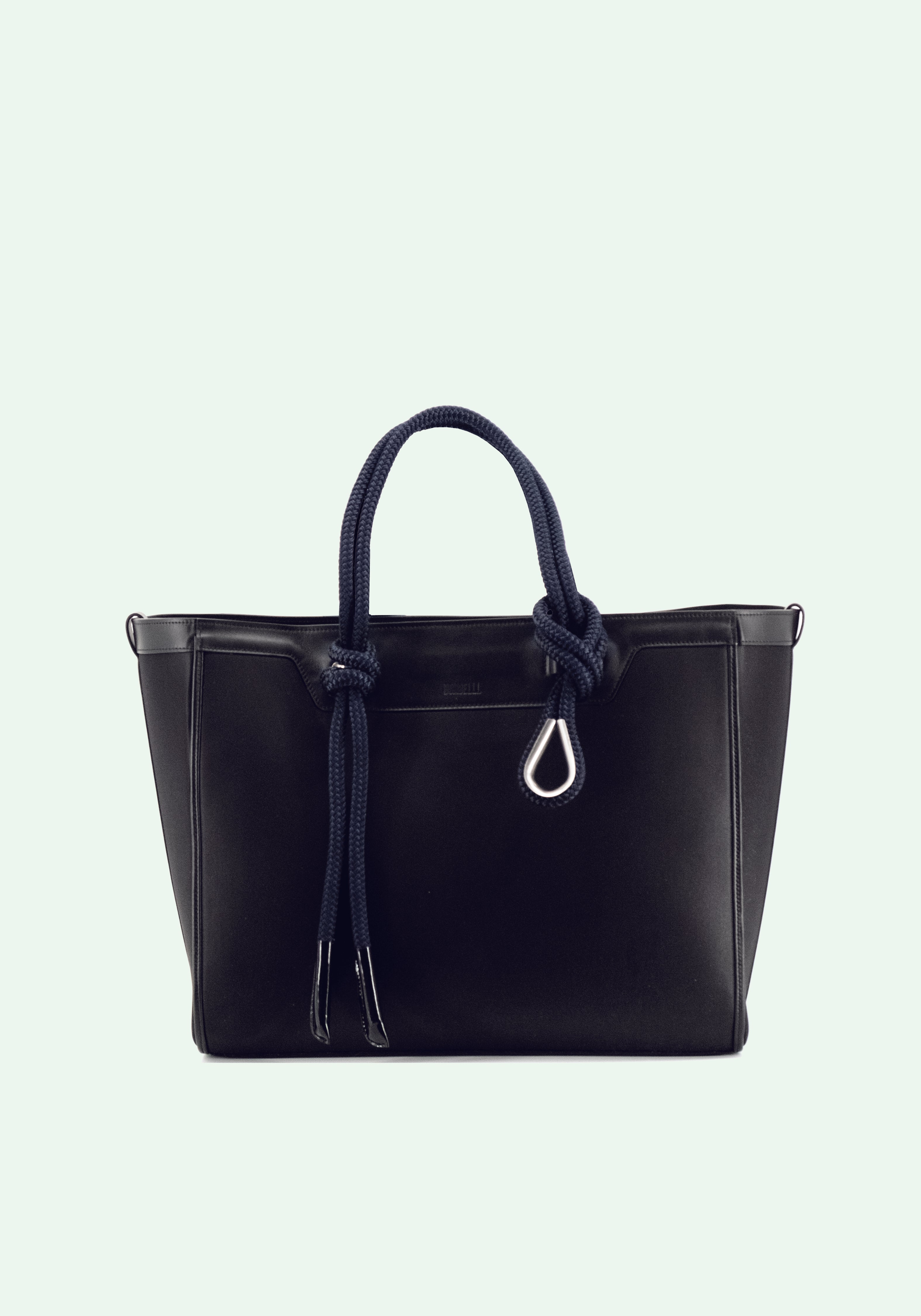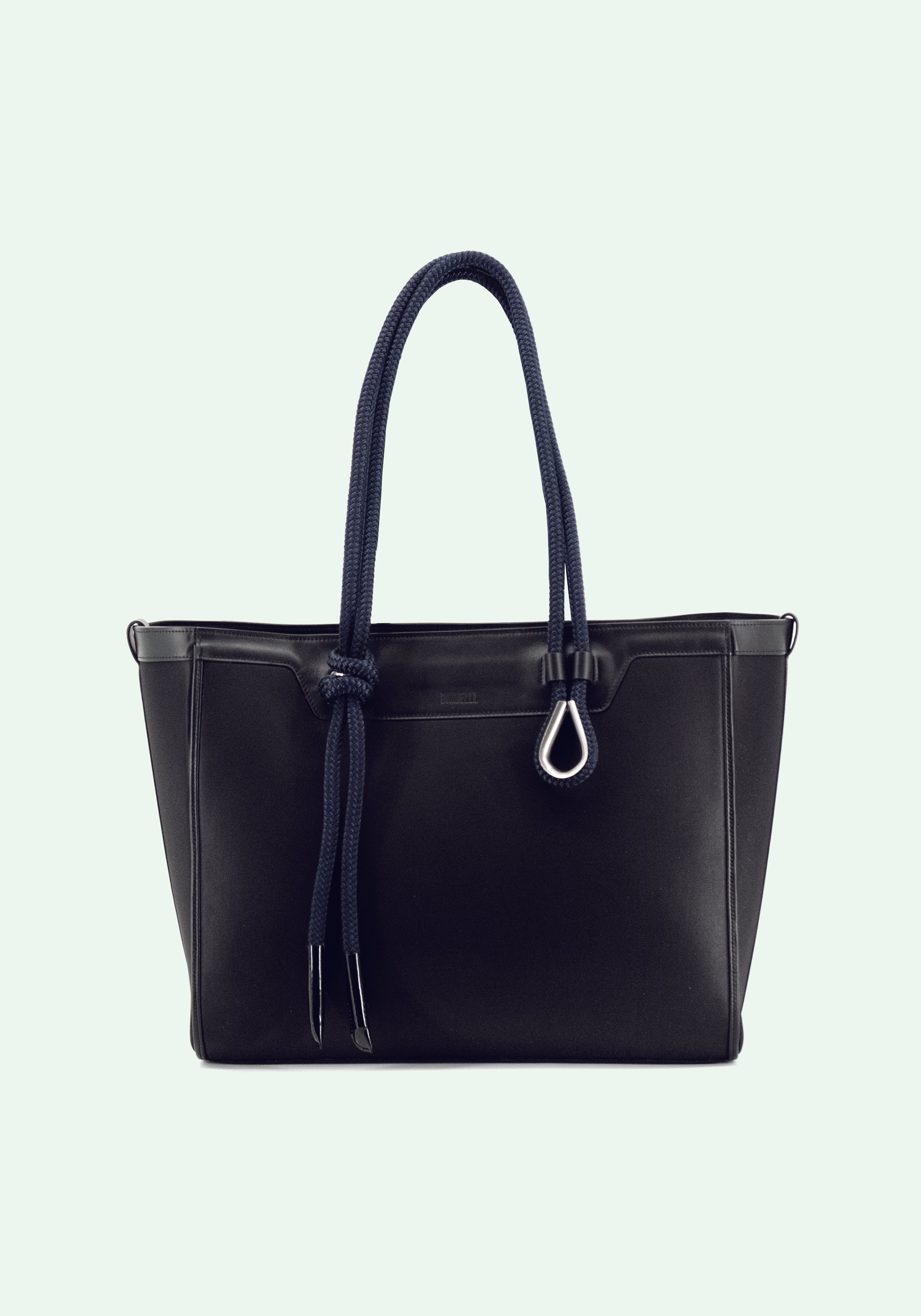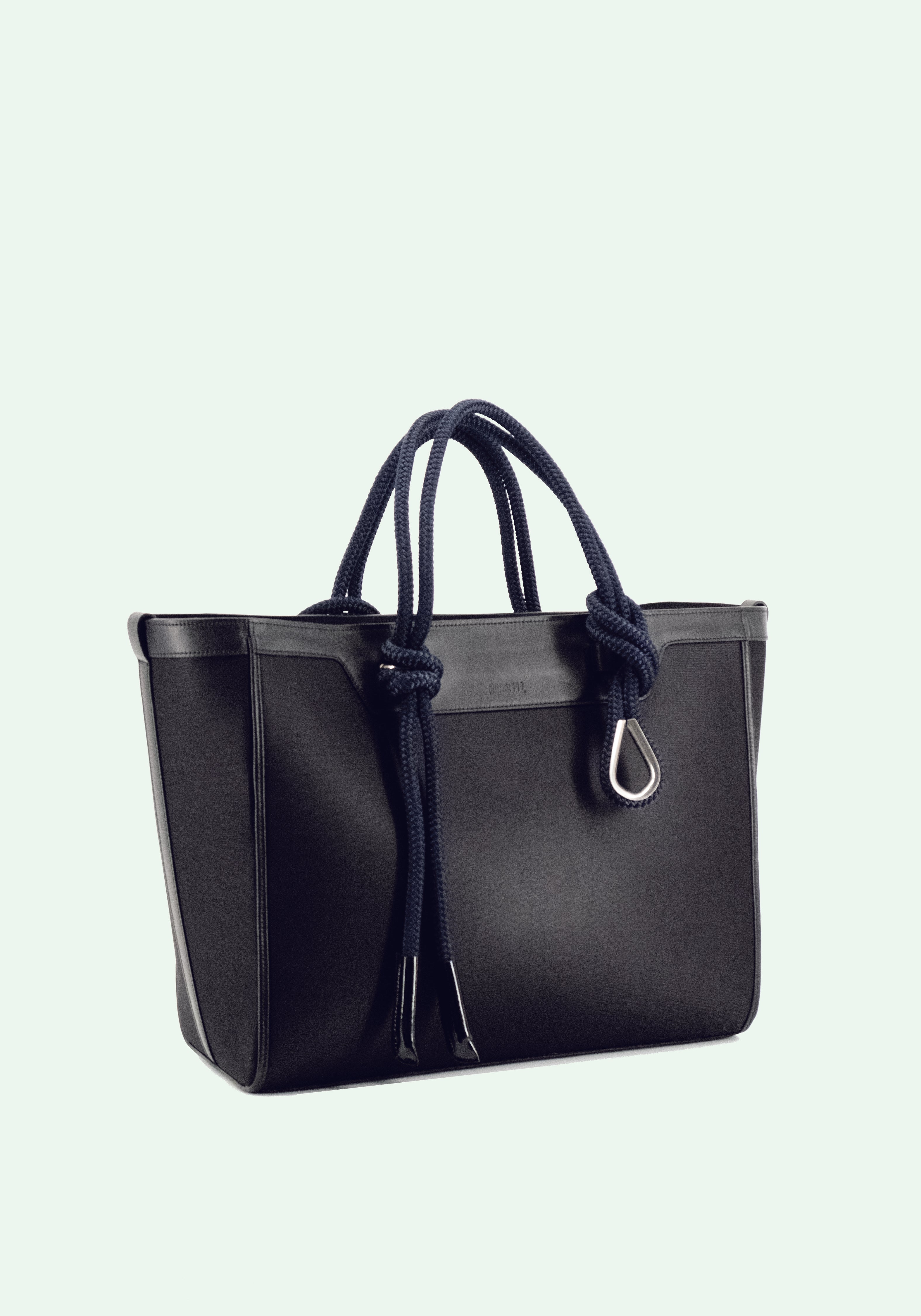 . UPCYCLED BLACK NEOPRENE & LWG CERTIFIED LEATHER.